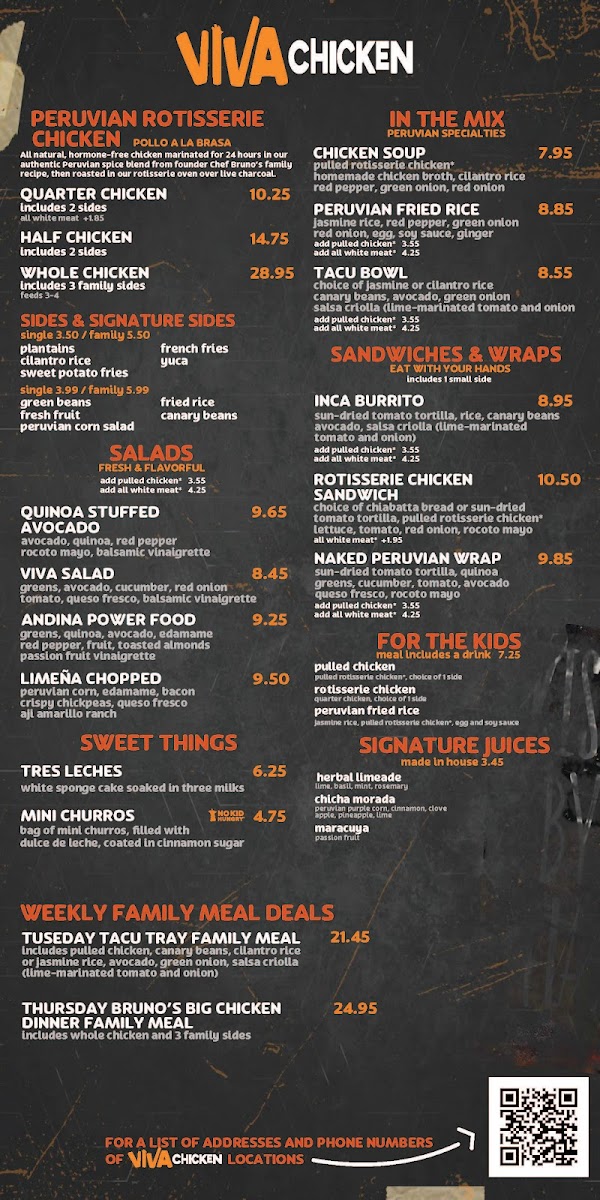 Welcome to Viva Chicken Huntersville, a culinary gem located in the heart of Huntersville, NC. This vibrant eatery specializes in traditional Peruvian flavors, showcasing a menu that delights every palate. The standout dish, the Tacu Tray, offers a customizable experience with succulent pulled rotisserie chicken, canary beans, cilantro or jasmine rice, and a medley of fresh toppings and sauces, perfect for family meals or a hearty solo feast.